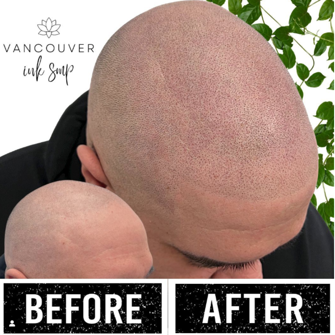 This cosmetic, non-surgical hair tattoo that gives the illusion of a close buzz cut hairstyle on a bald head. The treatment can also be used to conceal scars from a hair transplant or to treat hair loss through conditions such as Alopecia. Scalp Micropigmentation treatment is often referred to as SMP, a hair tattoo or scalp tattoo.